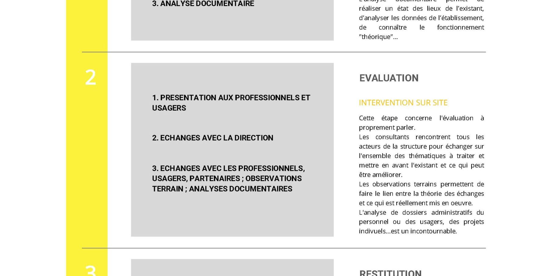Enfin, l’analyse documentaire permet de réaliser un état des lieux de l’existant, d’analyser les données de l’établissement et d’identifier les points à cibler lors des observation.