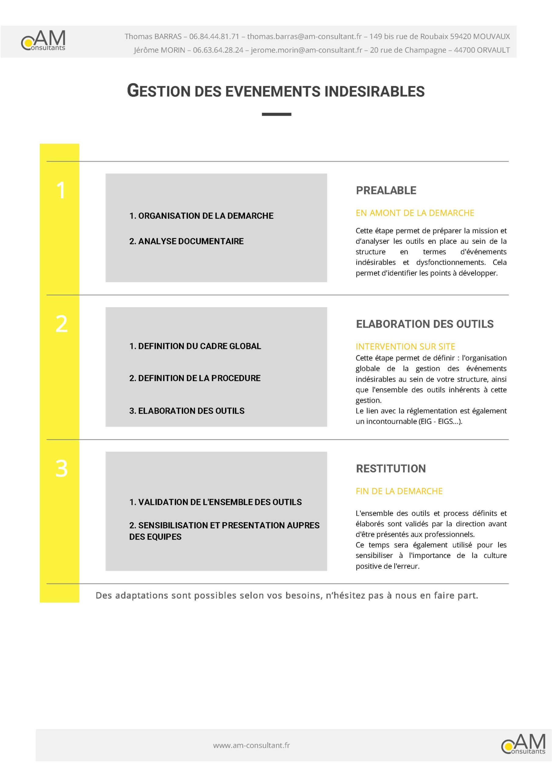 AM Consultants est un cabinet de conseil spécialisé dans le domaine médico-social. Nous intervenons dans tout type d’ESSMS en France et en Belgique pour la réalisation d’évaluations et d’audits, de formations et accompagnons les structures sur l’ensemble des aspects relatifs à leur gestion. Nos missions principales sont l’évaluation interne externe des ehpad , ehpa, saad, ssiad, esat, ime, iem, accueil de jour, csapa. Nous accompagnons les ESMS dans la mise en place de leur système qualité, la gestion des fei, les réorganisations, la réalisation du DUERP, document unique, la réalisation d’un diagnostic qualité de vie au travail, la réalisation du projet d’établissement, du plan bleu. Nous proposons également des formations pour les directeurs, AS, AMP, ASH, IDE, IDEC éducateurs et tout personnel. Ces formations portent sur les CPOM, LE référent IDE, le sens au travail, la RGPD…